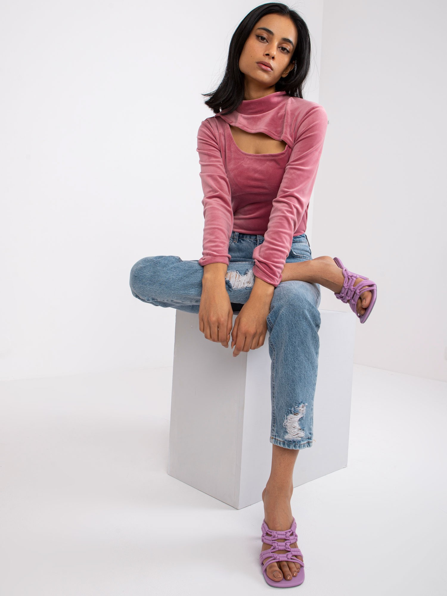 Biały damski top ze stójką.