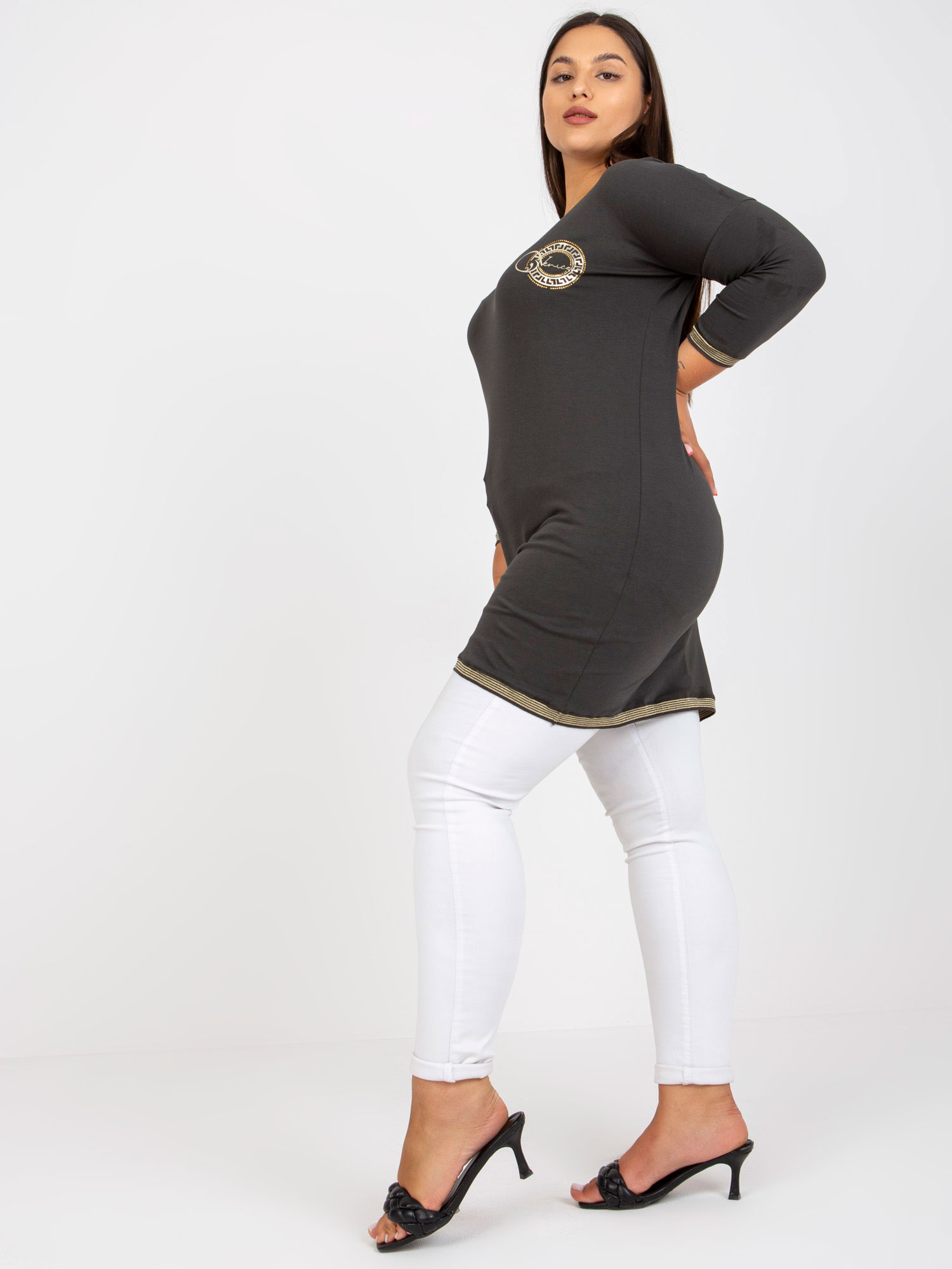 Wymiary tuniki w rozmiarze one size mierzone na płasko: szerokość pod pachami – 57 cm, długość rękawa – 41 cm, długość całkowita – 83 cm.