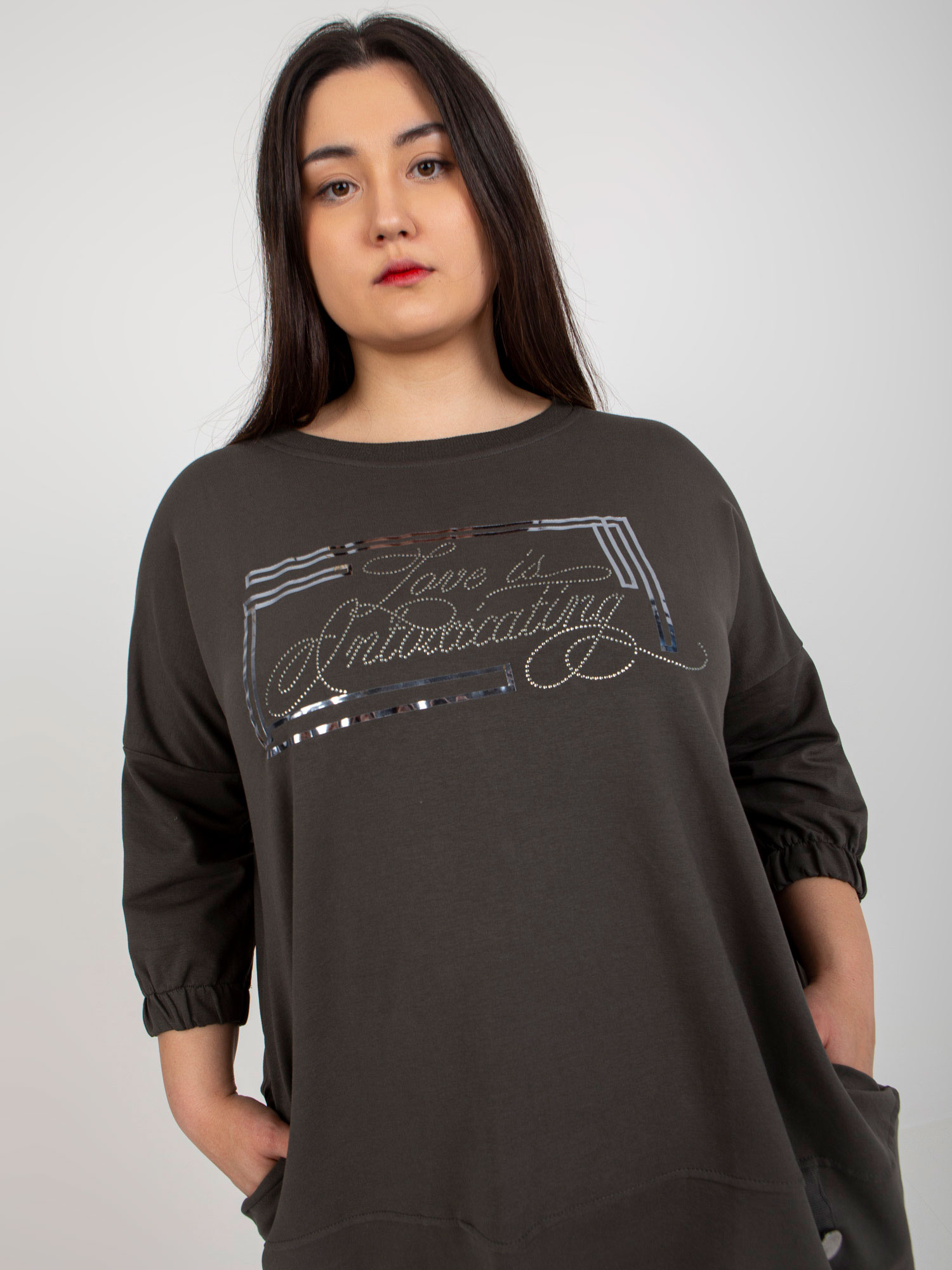 • Modelka: Modelka ma na sobie rozmiar one size. Wymiary modelki: wzrost 167 cm, biust 102 cm, talia 81 cm, biodra 113 cm