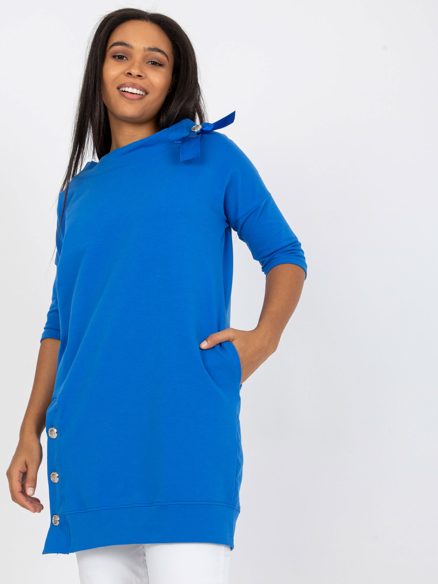 Wymiary tuniki w rozmiarze one size mierzone na płasko: szerokość pod pachami – 58 cm, długość rękawa – 35 cm, długość całkowita – 85 cm.
