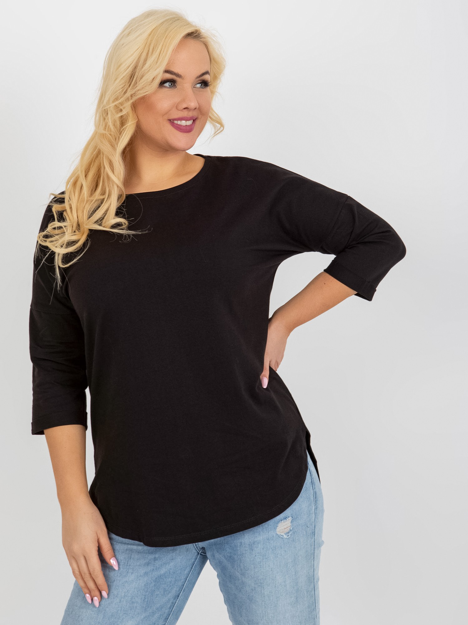 Czarna dłuższa bluzka plus size basic z rękawem 3/4 .