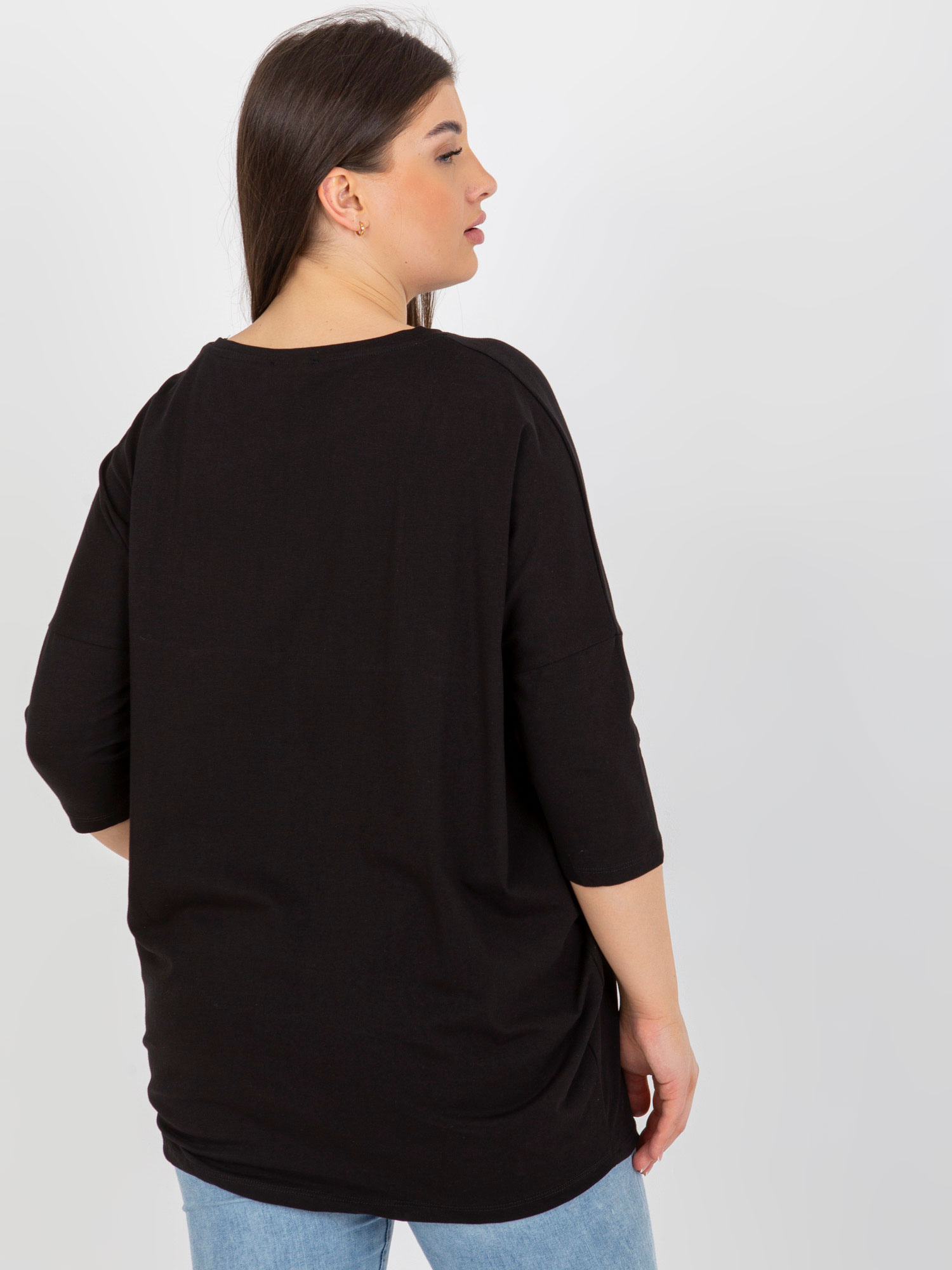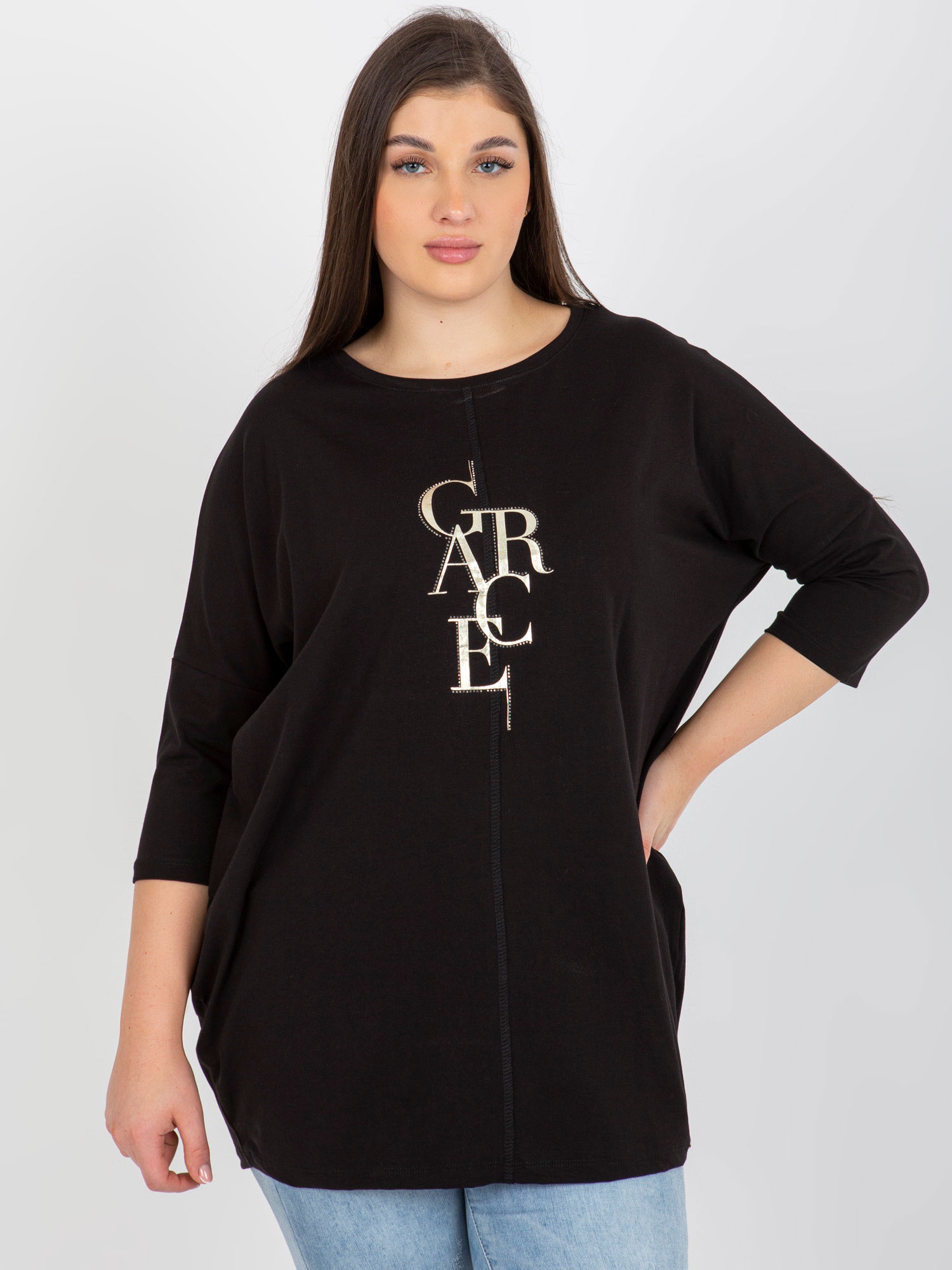 Czarna dłuższa bluzka plus size z napisem .