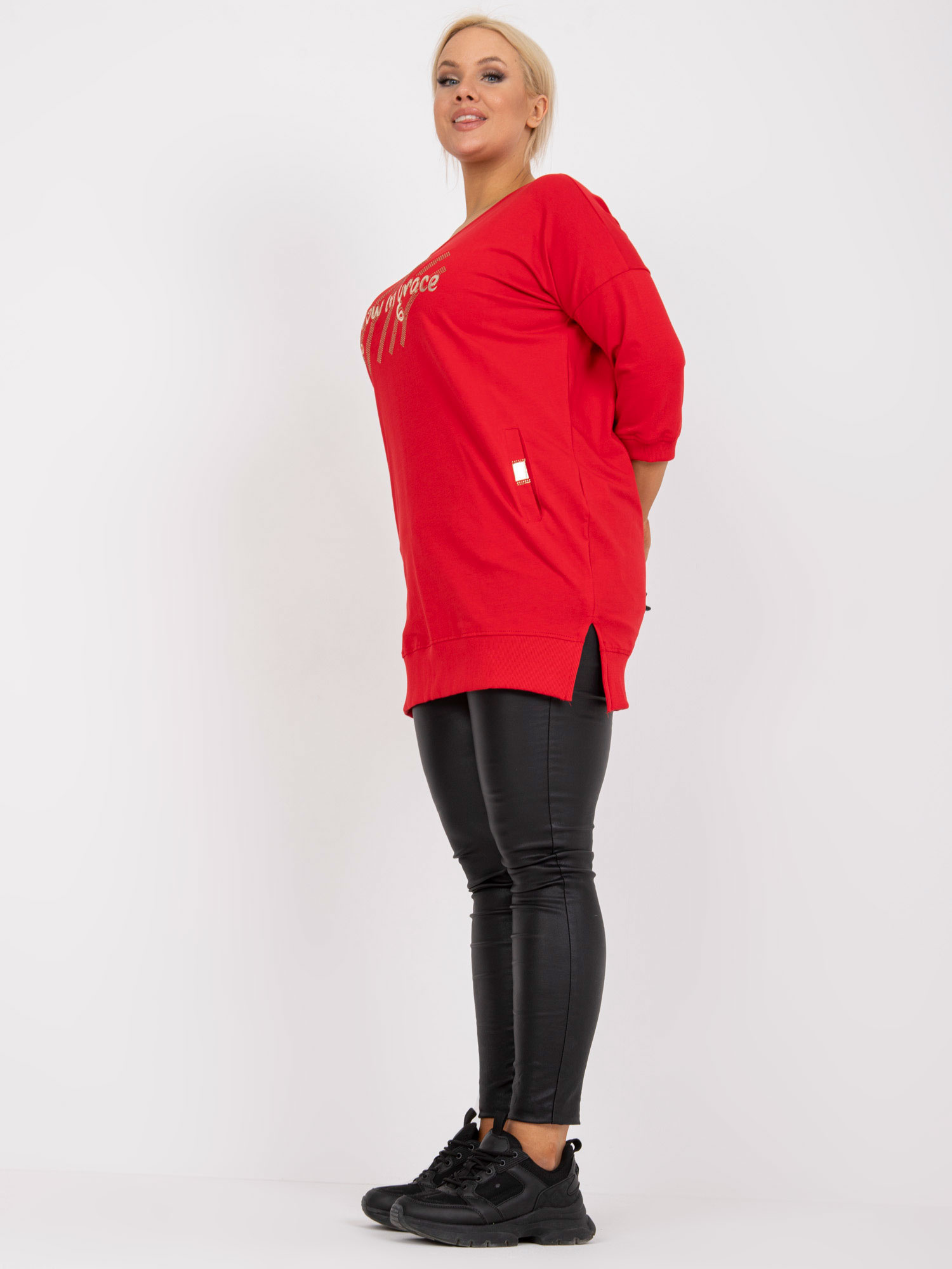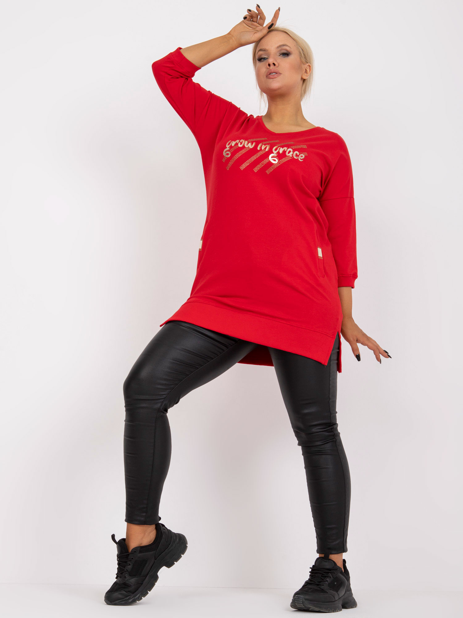 Wymiary tuniki w rozmiarze one size mierzone na płasko: szerokość pod pachami – 62 cm, długość całkowita – 83 cm, długość rękawa – 42 cm.