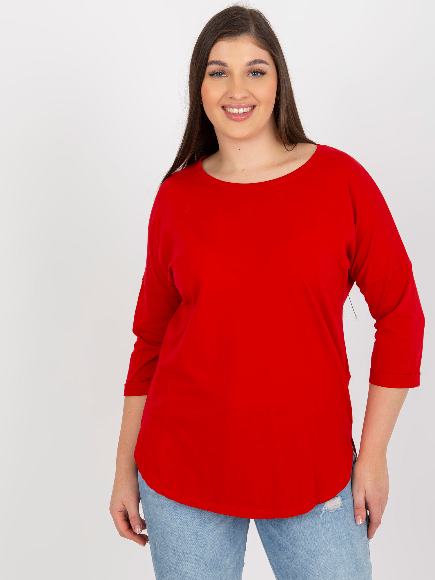Czerwona bluzka plus size basic z okrągłym dekoltem .