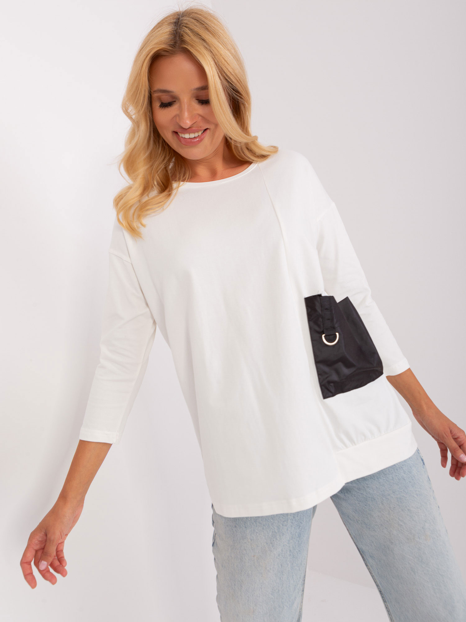 Wymiary bluzki w rozmiarze M mierzone na płasko: szerokość pod pachami – 60 cm, długość rękawa – 49 cm, długość całkowita – 67 cm.