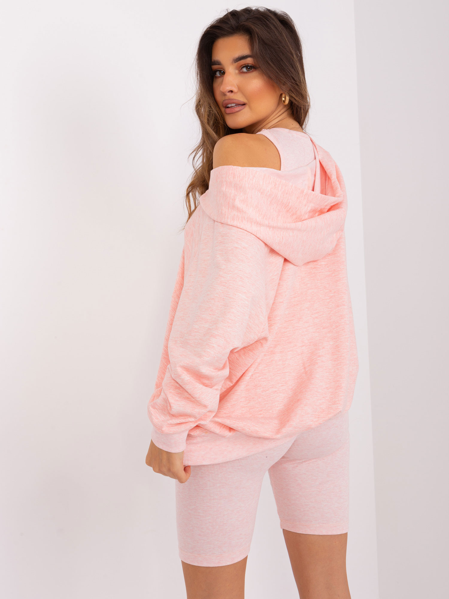 Modelka ma na sobie rozmiar one size Wymiary modelki: wzrost 172 cm, biust 103 cm, talia 73 cm, biodra 103 cm.