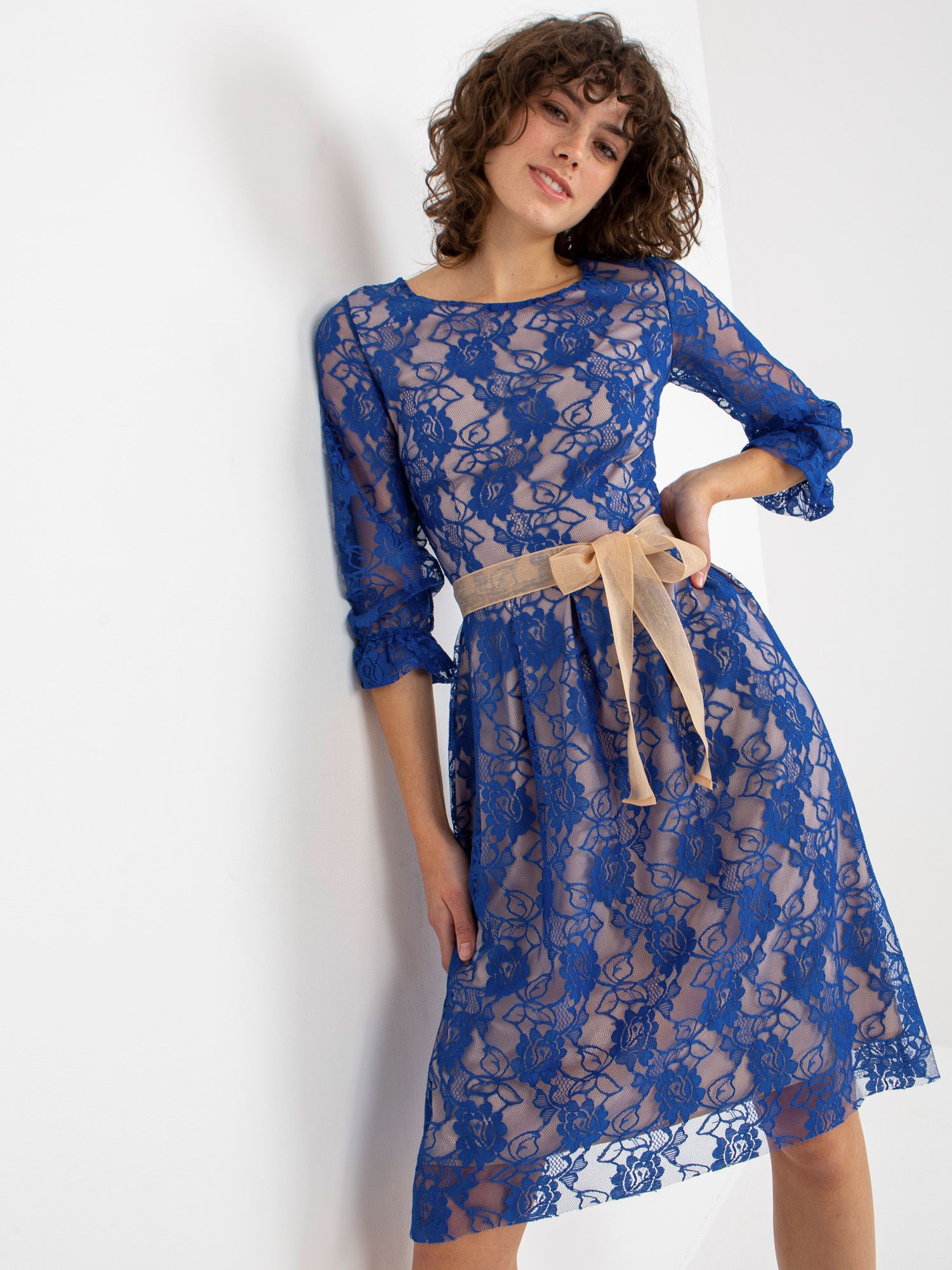 Modelka ma na sobie rozmiar one size. Wymiary modelki: wzrost 175 cm, biust 90 cm, talia 67 cm, biodra 103 cm.