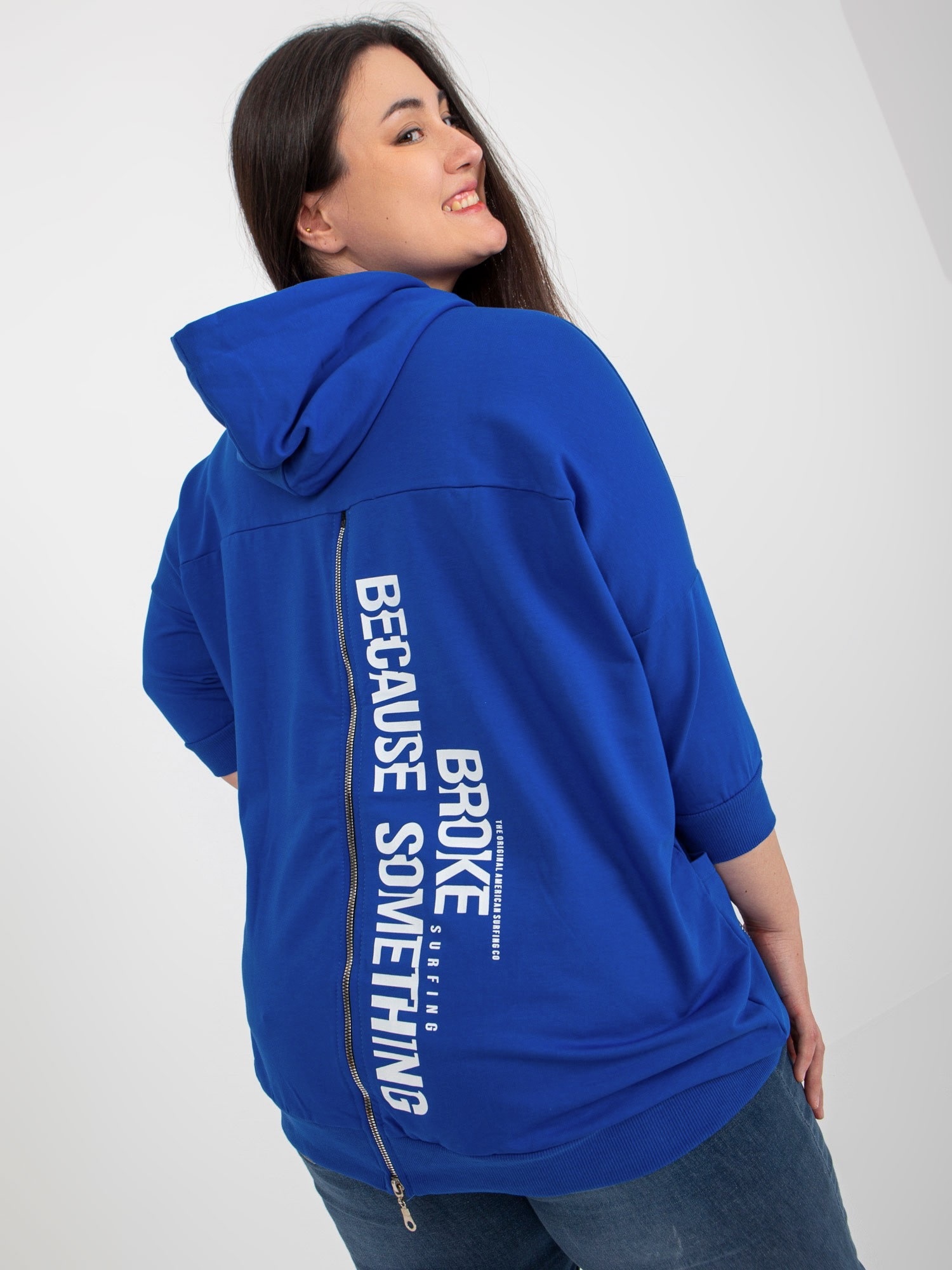 Kobaltowa dresowa bluza plus size z rękawem 3/4 .