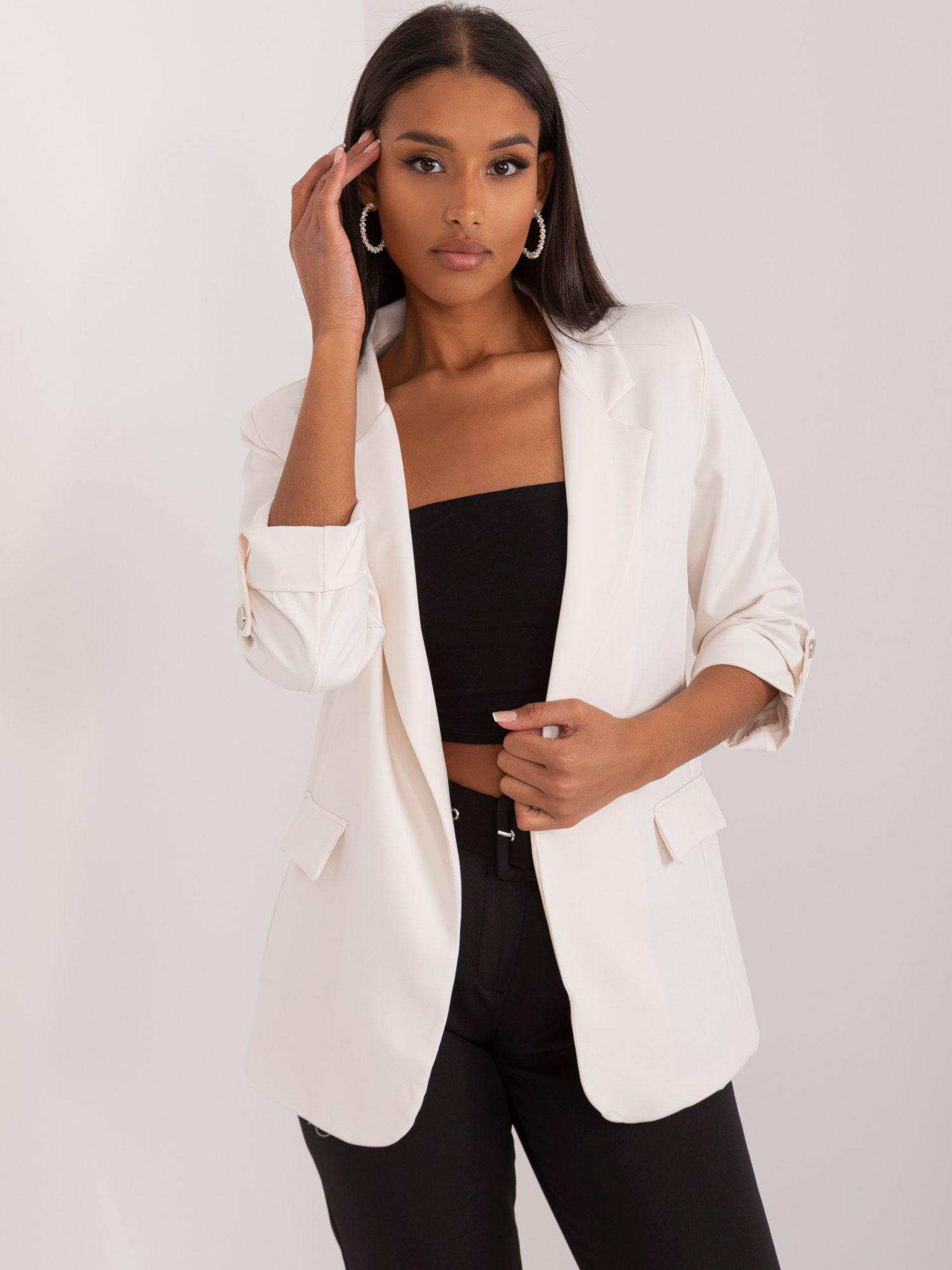 Wymiary marynarki w rozmiarze S mierzone na płasko: szerokość pod pachami – 54 cm, długość rękawa – 48 cm, długość całkowita – 74 cm.